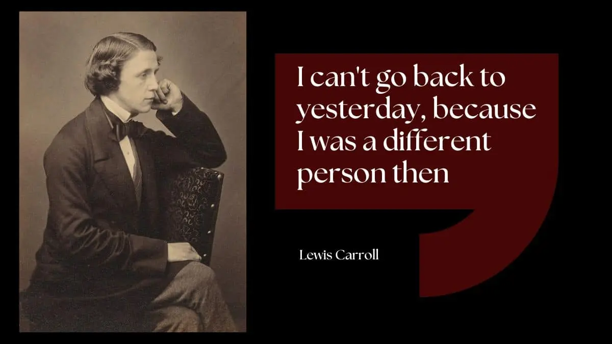 Lewis Carroll, the acclaimed author of “Alice’s Adventures in Wonderland,” was not only a master of fantasy literature but also a profound philosopher, often weaving significant life lessons into his narratives. One such gem of wisdom he bestowed is the quote: “I can’t go back to yesterday, because I was a different person then.”